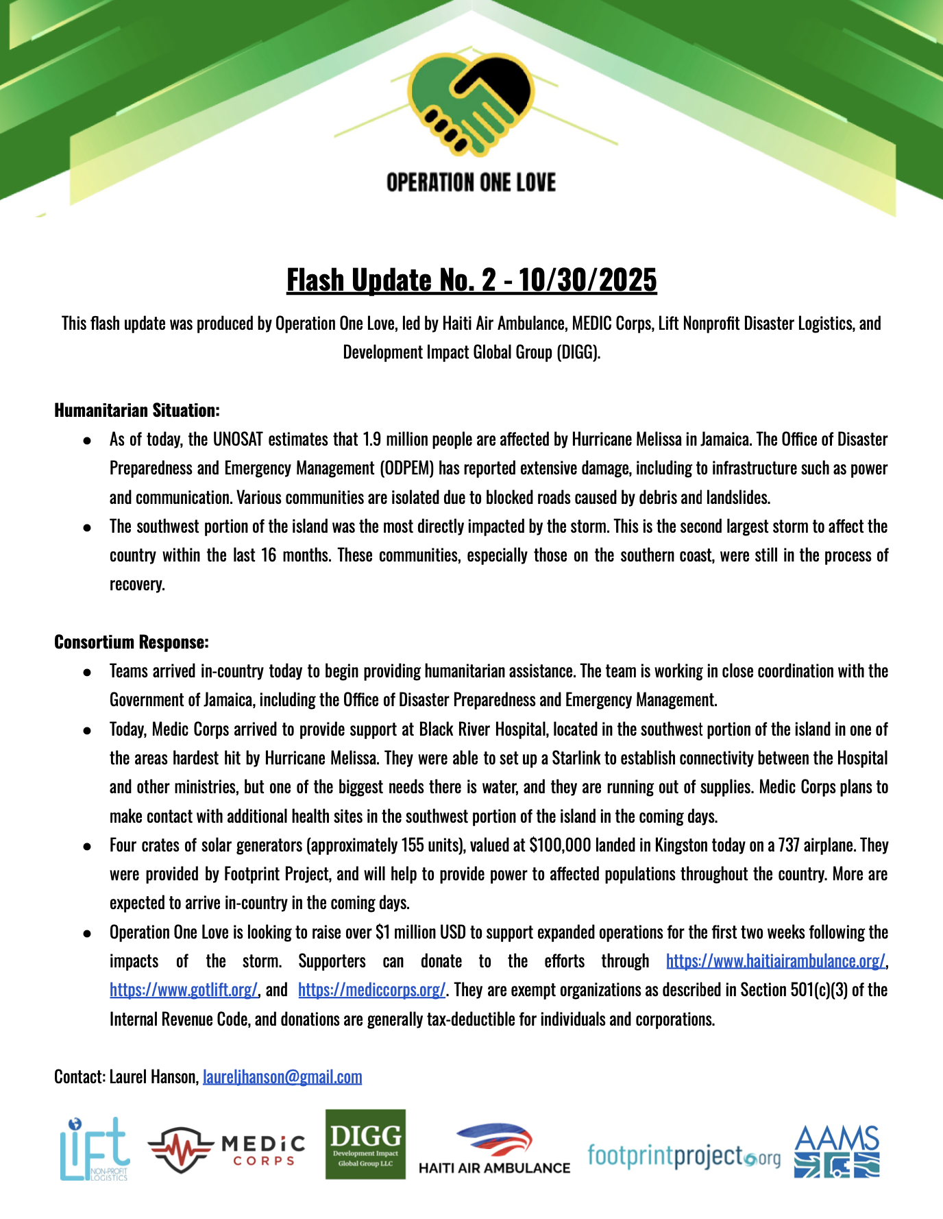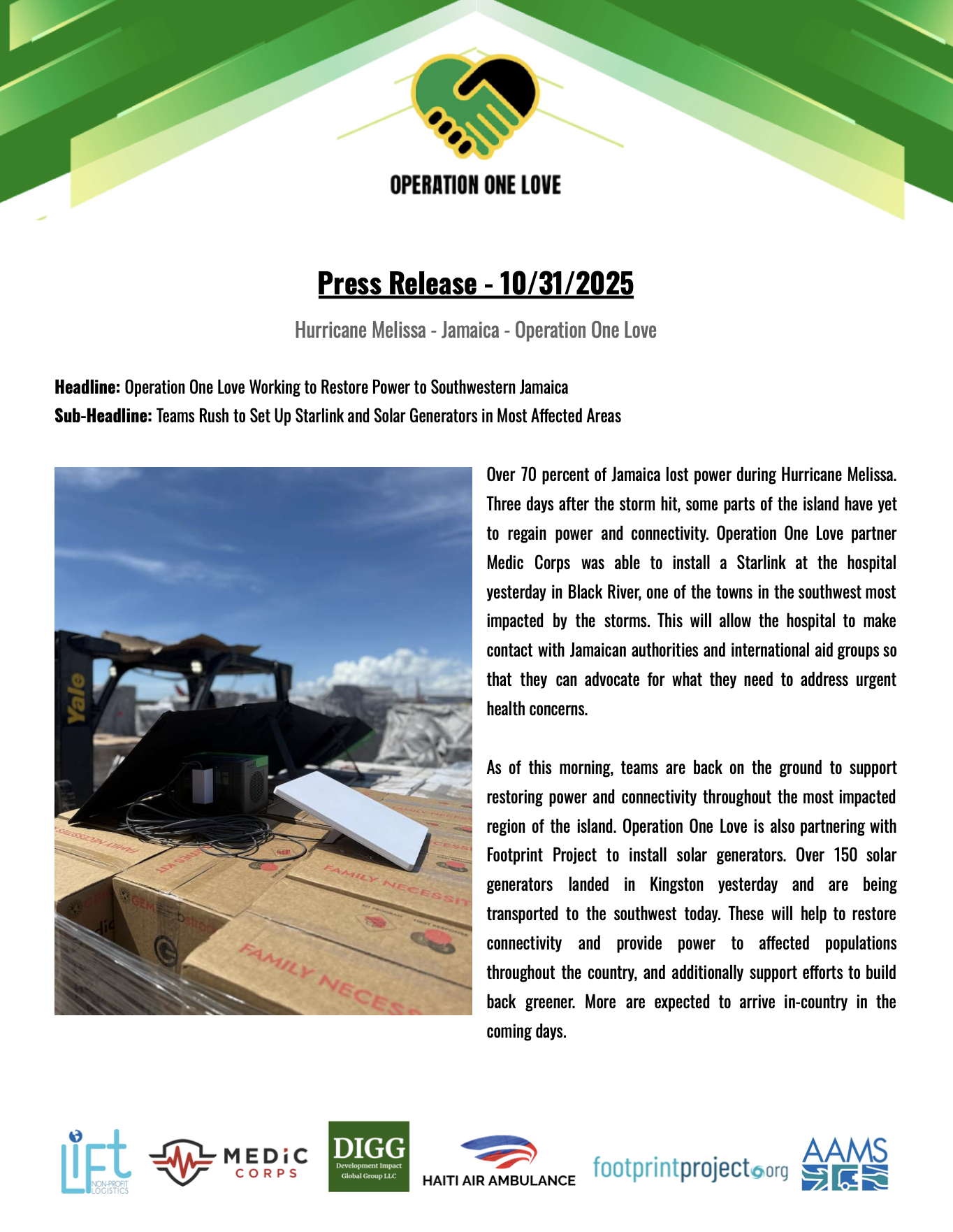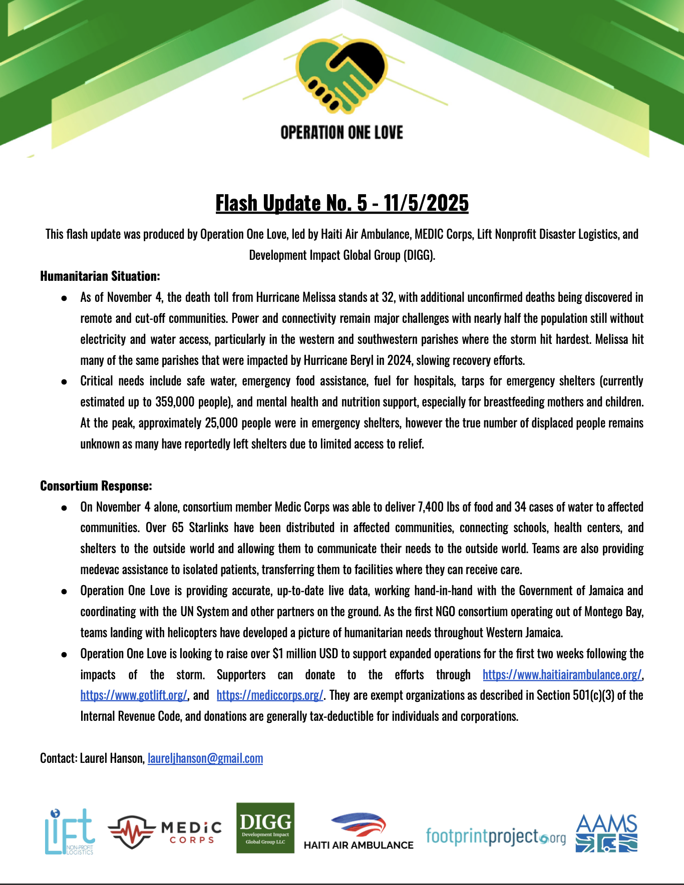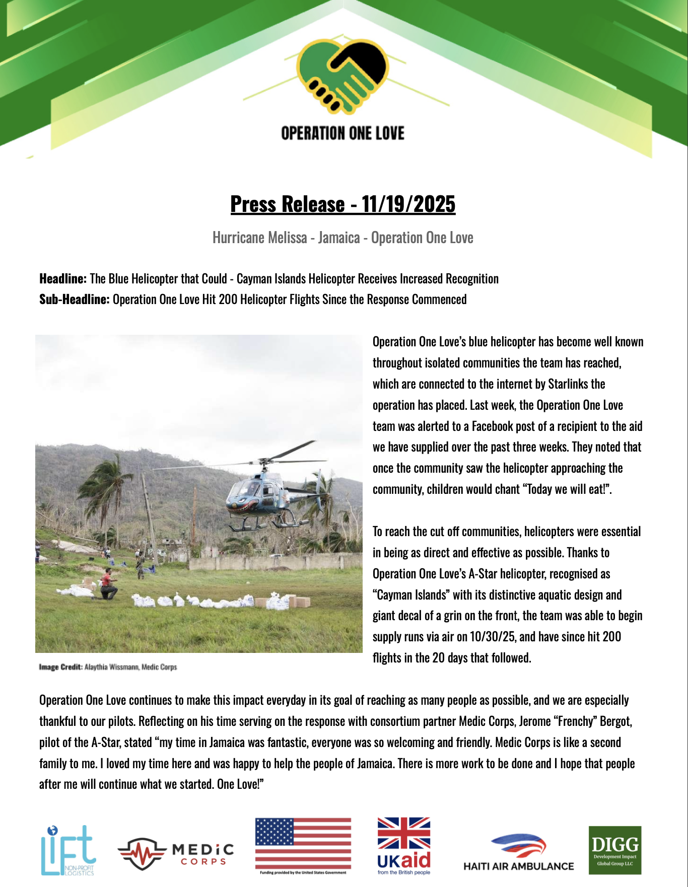 Operation One Love's blue A-Star helicopter, recognised as "Cayman Islands," has hit 200 flights in 20 days since the response began. Children in isolated communities chant "Today we will eat!" when they see the helicopter approaching.