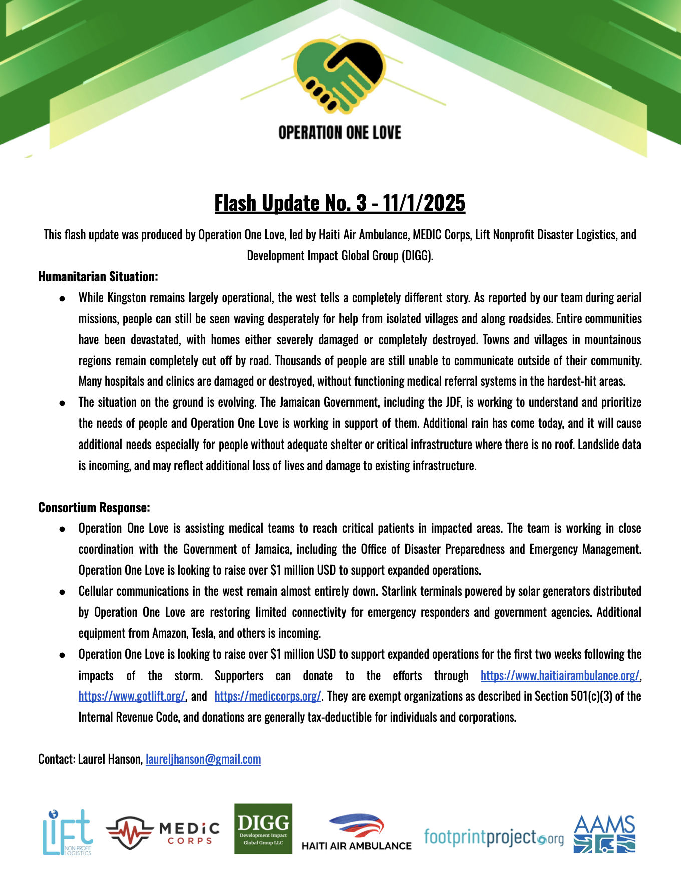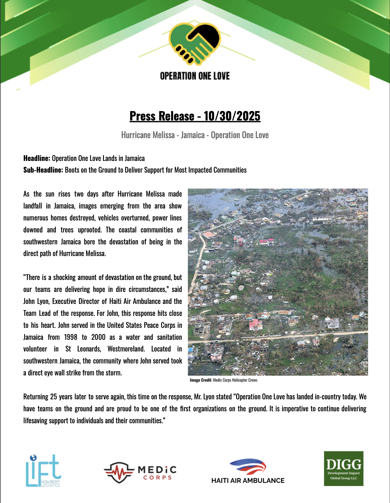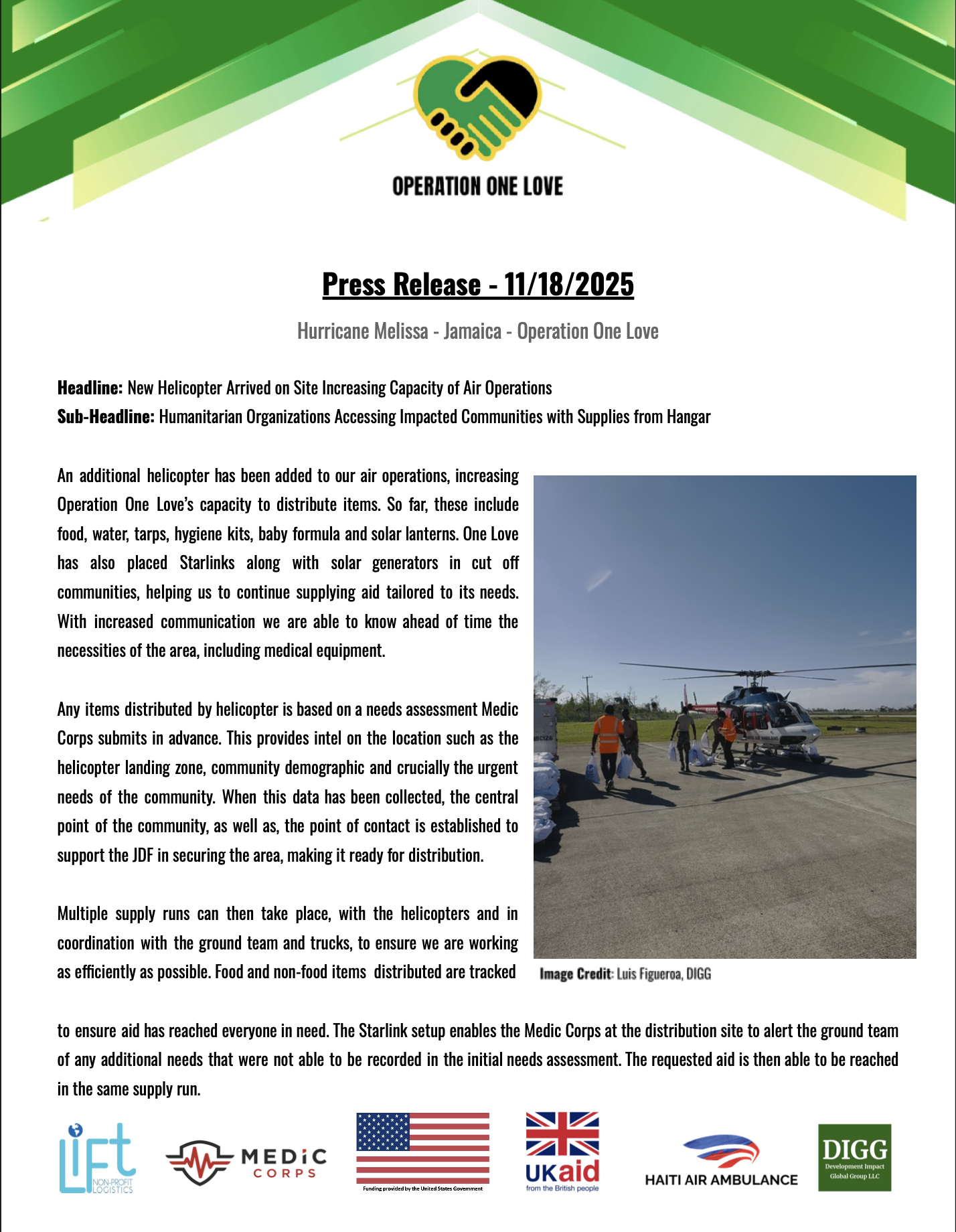 Operation One Love's blue A-Star helicopter, recognised as "Cayman Islands," has hit 200 flights in 20 days since the response began. Children in isolated communities chant "Today we will eat!" when they see the helicopter approaching.